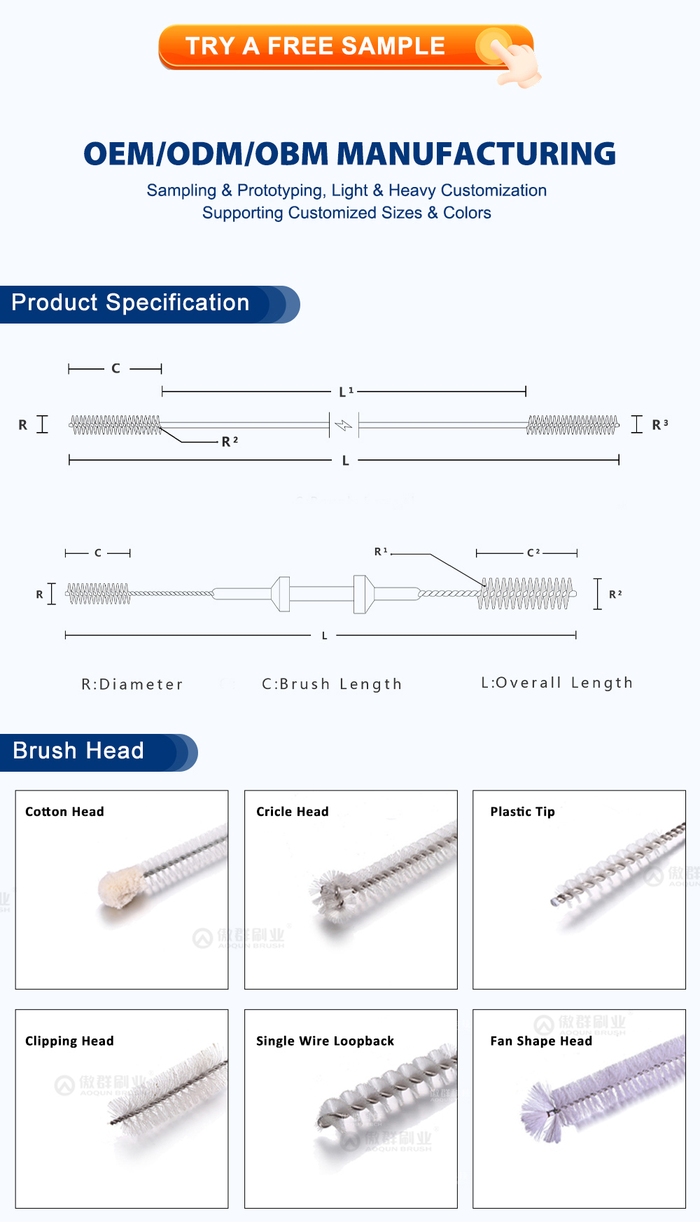 Brush Head Diameter: 1.0mm to 3.0mm